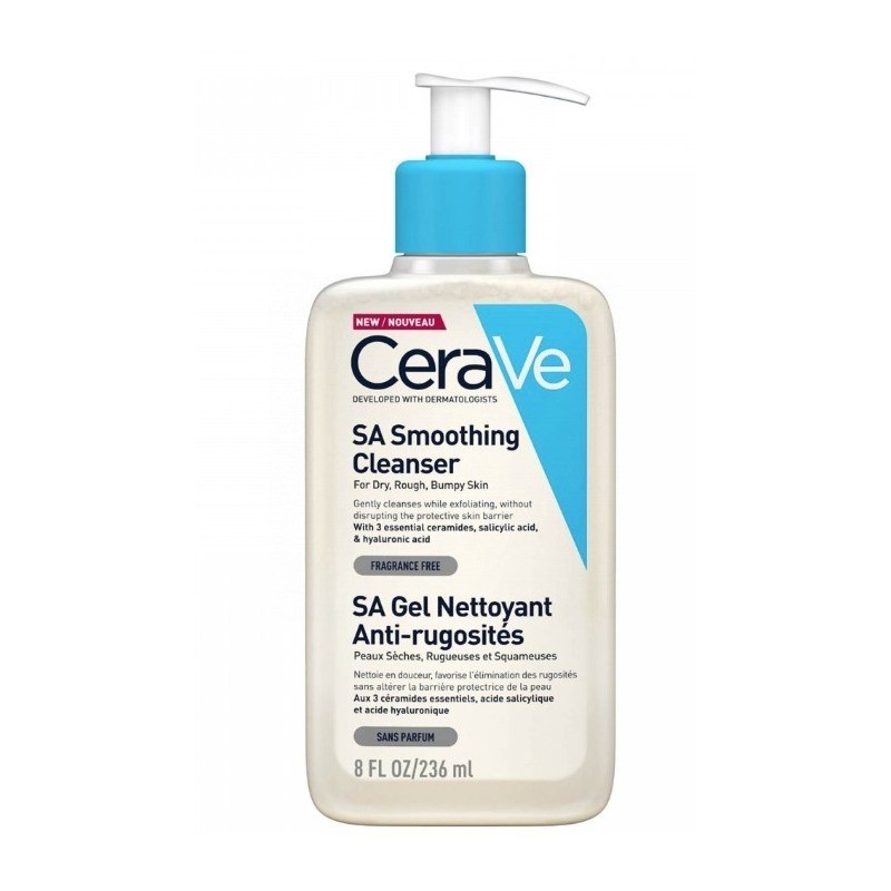 Desarrollado con dermatólogos, el SA Limpiador Anti-rugosidades de CeraVe está formulado para exfoliar, suavizar y limpiar de forma eficaz la piel seca, irregular y rugosa sin alterar la barrera de la piel.